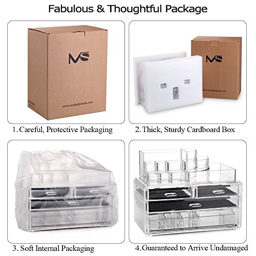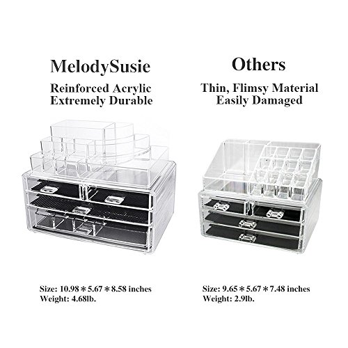 Verified Purchase This review is from: MelodySusie® Large Acrylic Makeup Organizer - 3 Pieces Transparent Mordern Jewelry and Cosmetic Storage / The Best Makeup Holder for All of Your Cosmetics, Jewelries, Nail Polishes etc. (Misc.)