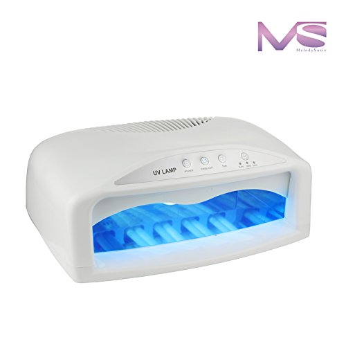 MelodySusie® High Quality Black 54W UV Lamp Light Acrylic Nail Dryer for CND Shellac, Soak Off, Harmony Gelish, IBD and any other Brand of UV Gel Nail Polish | Gel & Shellac CURING Light Finish Quick Drying with Detachable Tray & Timmer Setting | Fits 2 Hands or Feet at the Same Time + 6 * 9W UV Bulbs is available in Nail Dryers
