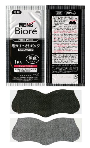 Product Description:Kao BIORE MEN'S Pore Cleaning Pack Black removes blackheads inside pores. Easy removable sheet cleans skin. Removes pore cloggers at one application. Large sheet covers the whole nose area. Contains menthol for refreshing feeling. Special black sheet makes it easy to see how much is removed