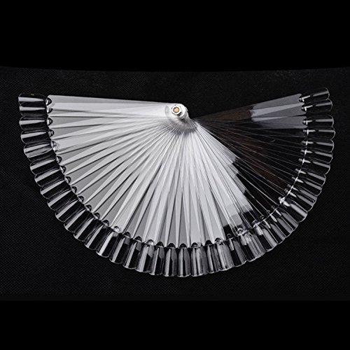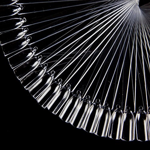 Brand new 50 Clear False Display Nail Art Fan Wheel Polish Practice Color Pop Tip Sticks Material:Durable plastic Color :Crystal clear Perfect choice for your nail art With mounting screw,no worry for dropping out Ideal for practice,demo and windows display Suit for home use or professional