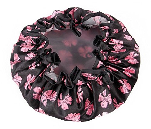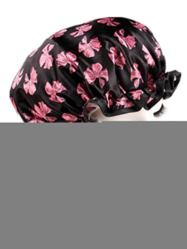 Moolecole Women's Bow-knot Printed Waterproof Double Layer Shower Cap Elastic Band Bathing Cap Spa Shower Hat is available in Shower Caps