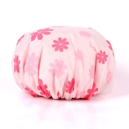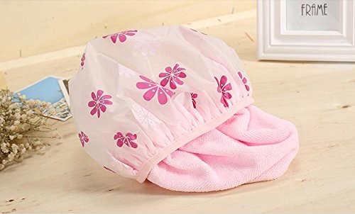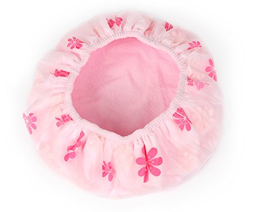 Moolecole Women Waterproof Hair Dry Lined Shower Cap Floral Double Layer Bathing Cap Elastic Band Spa Shower Hat Pink is available in Shower Caps