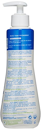 Mustela Hydra Baby Body Lotion 300ml contains a patented plant active ingredient that reinforces your baby's immature skin's natural development, in order to preserve it better from the surrounding agressions (pollution, calcareous water,...) until it reaches its maturity.Jojoba and sweet almond oils allow an immediate and durable hydration *. Shea butter wraps the skin in an extreme softness.Silky and supple, the skin of your baby becomes each day a little stronger for more wellbeing.* of the outer layers of skin.
