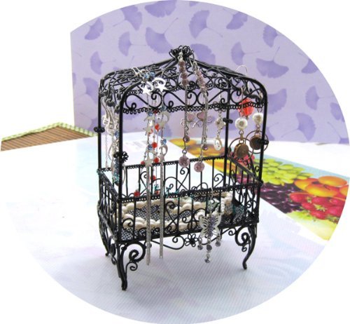 Sleeping in a fairy tale story is every girl to dream off. This jewelry organizer bed with Victorian canopy style let's your jewelries fulfill your dreams. Embellish it with your earrings, necklaces, bracelets or small items and keep your jewelries free of messy tangles. Save space and display them with this vintage jewelry display rack. Each piece is handmade. A great alternative storage organizer to a jewelry box on the chest, dresser or bathroom counter. Color: Black