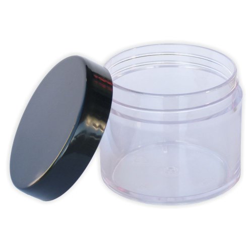 Pack of 5 transparent storage pots with black screw-top lid. High-quality robust product. Ideal for storing nail art decorations or for filling with creams or other cosmetics.