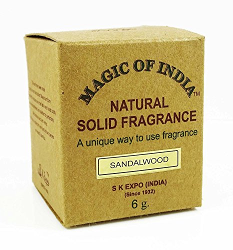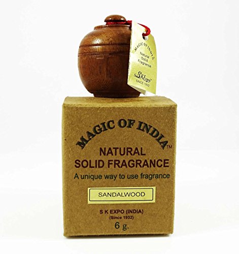 * Sale For: 1 Magic of India Natural Sandalwood Solid Fragrance Wooden Jar. * Fragrance: Sandalwood. * Quantity: 1 Piece. * Jar: Wooden Jar. * Weight: 6 g * Natural Sandalwood Solid fragrances are highly concentrated, non -alcoholic and long lasting. These are made from a blend of herbal extracts and natural essential oils, enriched with wheat germ oil and Aloe Vera. Experience the natural fragrance of nature in a comfortable way of applying as a fragrance on your body. The fragrance remains unchanged the entire day and rejuvenates human senses. * To apply, rub a small portion onto pulse points, wrists, or neck. The fragrance will release with your body warmth. Enjoy the real fragrance of nature in a convenient way * Ingredients: Natural Essential Oils, Tea Tree Oil, Wheat germ Oil, Aloe Vera Extracts, Bee Wax* Note: These are tiny small wooden jar, should be open very carefully.