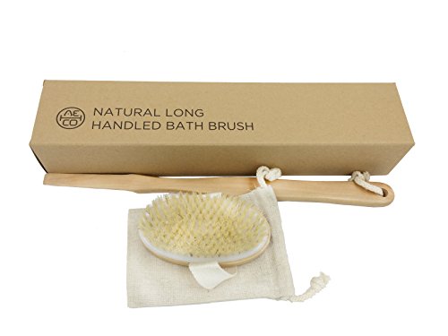 The Aechoo Body Brush is a spa quality bath brush that features all-natural bristles on a perfectly sized oval head. Natural bristles are superior to the synthetics used in other designs, as they provide effective cleansing and remove dead skin cells without scratching and abrading the skin. In addition, the bristles distribute your skin's natural oils to keep the tissue hydrated, and they cling to body wash to give you a better scrub. When you cleanse with this bath brush, your skin will be thoroughly cleansed, softer and smoother.