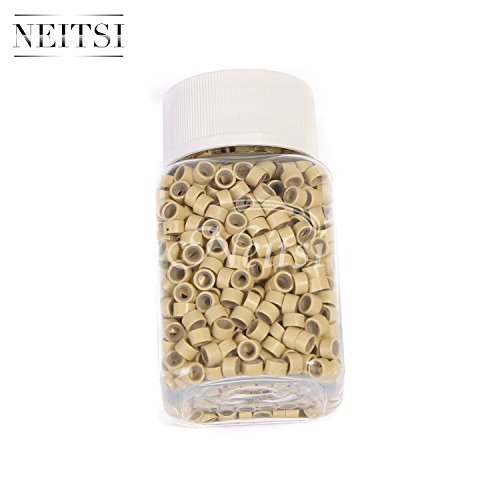 Neitsi® 5mm Silicone Lined Micro Rings Links Beads Linkies for I Bonded Tipped Hair Extensions (500, Blonde#) is available in Hair Extensions