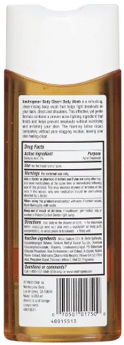 I really like the Neutrogena brand as a whole. This particular body wash has had the most positive effects for me overall. I like the smell! You can feel it working deep in your pores when you're massaging it in. I use it once in the morning and once at night. It helps minimize breakouts but it does not eliminate existing acne.