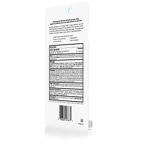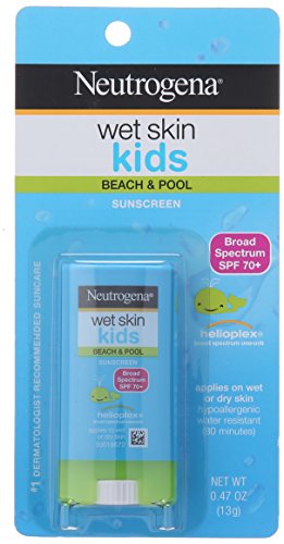 Help keep kids protected against sun damage at the beach or the pool with Neutrogena Wet Skin Kids Stick Sunscreen Broad Spectrum SPF 70. Made for active kids, this convenient stick sunscreen is specially formulated to work on wet skin. It instantly cuts through water, creating a Broad Spectrum protection with every application. This sunscreen is formulated with clinically-proven Helioplex, an advanced sunscreen technology with superior broad-spectrum protection from skin-aging UVA rays and skin-burning UVB rays. This dermatologist-tested sunscreen is hypoallergenic, oil-free, and PABA-free.