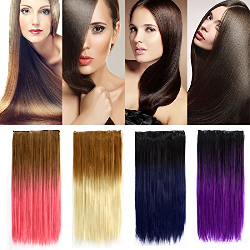 Neverland Two Tone 24" Long Straight Clip in Hair Extensions Hairpieces Ombre Hair Extension is available in Hair Extensions