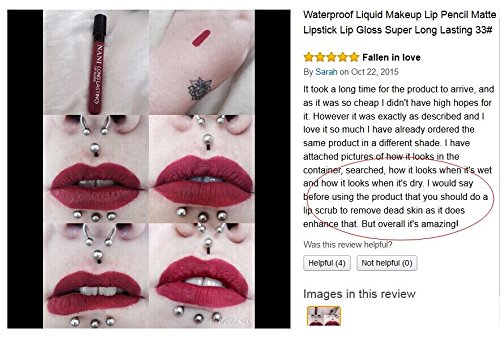 Verified Purchase This review is from: Neverland Waterproof Liquid Makeup Lip Pencil Matte Lipstick Lip Gloss Super Long Lasting 1# (Misc.)