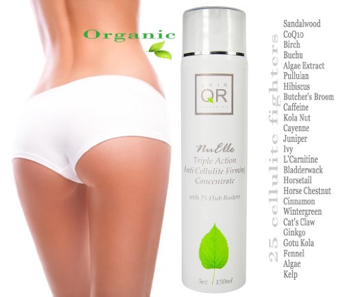 Organic, all natural Light cream texture, easy to apply, fast absorbing Contains top 20+ known cellulite reducing ingredients Diuretic, improves circulation, reduces the appearance of cellulite overtime Firming, detoxifying Purified Water, Barbadensis Leaf Juice (Aloe), Helianthus Annuus (Sunflower Oil), Glyceryl Stearate, Kosher Vegetable Glycerin, Octyl Palmitate, Cocos Nucifera (Coconut Oil), Theobroma Cacao (Cocoa Butter), Cetyl Alcohol, Potassium Stearate, Beeswax, Panthenol (Vitamin B5), Santalum Album (Sandalwood) Essential Oil, Pinus Pinaster (Pine Essential Oil), CoQ10, Betula Alba (Birch) Essential Oil, Agathosma Betulina (Buchu) Essential Oil, Algae Extract, Pullulan, Hibiscus Sabdariffa (Hibiscus) Flower Extract, Ruscus Accileatus (Butcher's Broom), Coffea Arabica (Caffeine), Cola Nitida (Kola Nut), Capsicum Annuum var. Aannuum (Cayenne), Juniperus Communis (Juniper), Hedera Helix (Ivy) Extract, L'Carnitine, Fucus Vesiculosus (Bladderwack), Equisetum Arvense (Horsetail), Aesculus Hippocastanum (Horse Chestnut), Cinnamomum Aromaticum (Cinnamon), Gaultheria Procumbens (Wintergreen Essential Oil), Uncaria Tomentosa (Cat's Claw), Ginkgo Biloba (Ginkgo), Centella Asiatica (Gotu Kola), Caviar Extract, Cymbopogan Flexuosus (Lemongrass Essential Oil), Joeniculum Vulgare (Fennel), Pelargonium Gravolens (Geranium Essential Oil), Seaweed Extract (Algae), Macrocystis Pyrifera (Kelp), Helichrysum Italicum (Helichrysum Essential Oil), Simmondsia Chinensis (Jojoba Oil), Calophyllum Tacamahaca (Tamanu Oil), Borago Officinalis (Borage Oil), Linum Usitatissimum (Flax Seed Oil), Oenothera Biennis (Evening Primrose Oil), Rosa Canina (Rose Hip Oil), Allantoin, Arnica Montana (Arnica)