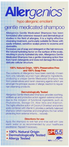 Allergenics Gentle Medicated Shampoo is a highly effective cleansing treatment, particularly suitable for those with easily irritated sensitive scalps prone to eczema and dermatitis.It has a gentle cleansing action free from soap, parabens and harsh detergents and does not damage the scalps delicate cellular structure.