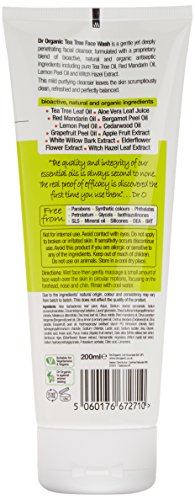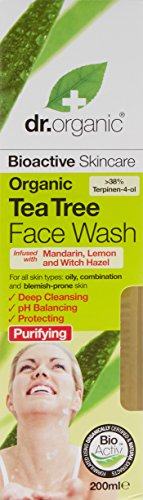 Dr Organic Tea Tree Face Wash is a gentle yet deeply penetrating facial cleanser, formulated with a proprietary blend of bioactive, natural and organic ingredients, including pure organic Tea Tree Oil, Mandarin Oil, Lemon Oil and Witch Hazel. This mild antiseptic, antibacterial cleanser leaves the skin scrumptiously clean, refreshed and perfectly balanced.
