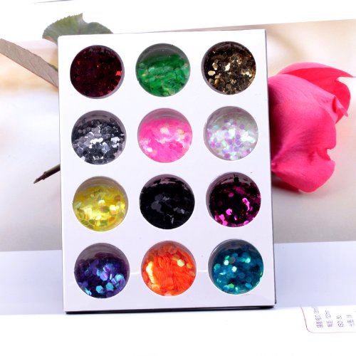 Ostart 12 Color Glitter Hexagon Acrylic UV Gel False Tips Nail Art Salon Tool Set is available in Nail Art Sets