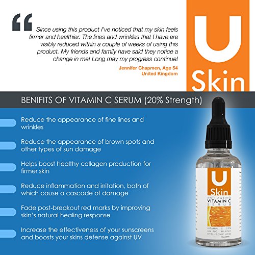 Vitamin C helps your skin replace old, dead cells with new, fresh ones to bring a youthful quality to your face - but it's not the only ingredient at work here. uSkin's Vitamin C Serum is a potent combination of some of the most POWERFUL anti ageing elements known to science: