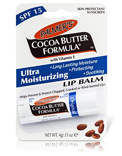 Palmer's Cocoa Butter Formula Original Ultra Moisturizing Lip Balm, enriched with Vitamin E and with the added benefit of SPF 15, helps prevent and protect chapped, cracked or wind-burned lips. Smooth application and convenient size make this the perfect year-round lip balm.