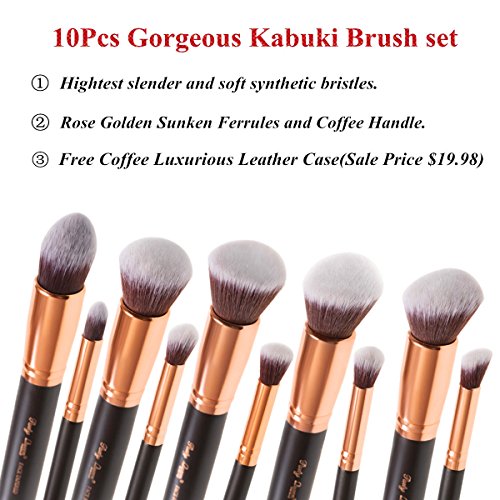 Unique design and color 10Pcs Kabuki Brush Set with great soft and Gorgeous bristles and Reasonably Price, apply flawless look for you.