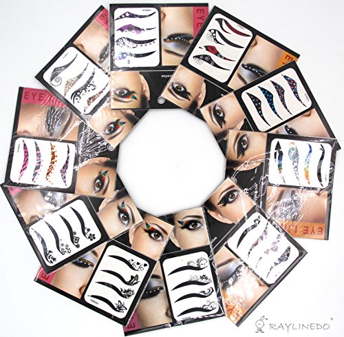 Pack of 40 EYE tattoo stickers. 4 Pairs/Pack, totally 10 packs with no repetition. Material: Water transfer printing paper, environmental non-toxic glue water, POP environmental printing ink, UV printing. Texture: After stickers affixed, there won't be very sticky , waterproof and sweat-resistant, antifriction ~ but!! No oil please! Ideal for parties and balls or any other fancy occasions. How To Use: 1. Make sure your eyes are 100% clean and free of any kind of beauty product or oil. 2. Keep your eye CLOSED when shape, size and apply the stickers. 3. Place the tattoos arround your eyes. 4. Wet the tattoo thoroughly with a sponge. Wait for 40 seconds before remove the paper. 5. Once the paper has been removed wet your eyes again to smooth it out and seal it. 6. Wait for 5 mins to let the eye tattoo fully dried. 7. Use the product over the eyes after it's fully dried. Make sure it's not oil based.Note: NOT FOR CHILDREN UNDER 3 YEARS OLD PLEASE.