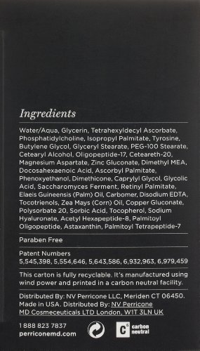Developed by Dr. Perricones patented delivery system Helps improve noticeable signs of aging including wrinkles, enlarged pores, dryness, redness Effectively combats discoloration, uneven skin tone, impurities Protects skin from loss of tautness, sleekness & glow Skin appears more rejuvenated & vigorous in a youthful appearance