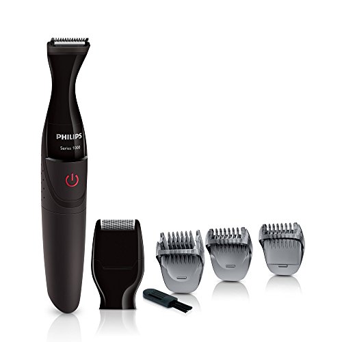 Precise edges and contours 3 precision combs Detail shaver attachment DualCut precision trimmer Fully washable, AA battery The Philips MULTIGROOM Series 1000 provides power and precision for trimming, shaping and shaving facial hair. Trim and shape your beard evenly with the advanced DualCut trimmer and the combs. Define precise lines, edges and contours with the detail shaver. Detail trimmer for perfect facial details The 21-mm precision trimmer helps you trim evenly and shape your facial style (stubble, goatee, sideburns, neckline or moustache) with great control and visibility. Sharper blades* for perfect edging with DualCut technology Advanced DualCut Technology combines a double-sharpened cutting element with low-friction engineering. Detail shaver for perfect lines and contours The skin-friendly 21-mm detail foil shaver is designed to fit into small spaces with more precision than a blade, for a clean shave even in hard-to-reach areas. 3 precision combs for an even trim of facial hair Trim and maintain the uniform length of your stubble, beard, goatee, sideburns and moustache with the 1-mm, 3-mm and 5-mm click-on precision combs. Fully washable The trimmer and the combs are easy to clean under the tap and can be used in the shower. Brush for easy cleaning of the precision trimmer The brush keeps the blade clean after use. Easy hold and control, even when wet The soft-touch rubber grip gives you the best hold, even when wet, for better control when you operate your trimmer. 2-year guarantee All of our grooming products are built to last. The trimmer comes with a 2-year guarantee and is compatible with voltages worldwide The blades never need to be oiled No need to oil ever, for easy maintenance.