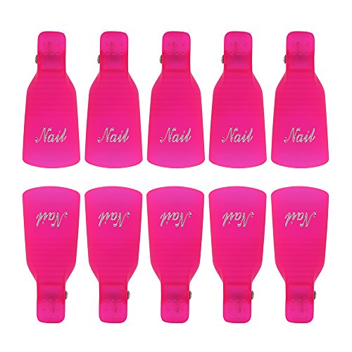 10Pcs Plastic Acrylic Nail Art Soak Off Clip Cap UV Gel Polish Remover Wrap Nail Tool (Rose-Red) is available in Polish Remover