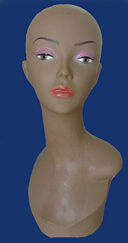 18" Tall PVC Plastic Female Mannequin Head With Ear Brown Color is available in Polystyrene Heads