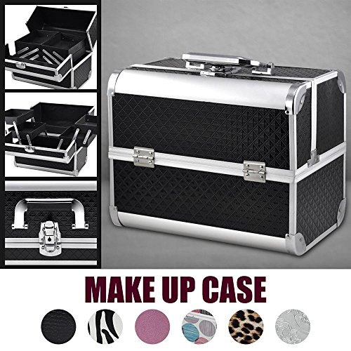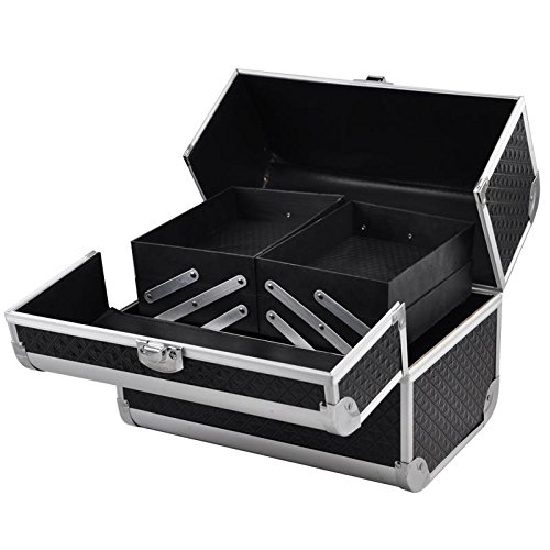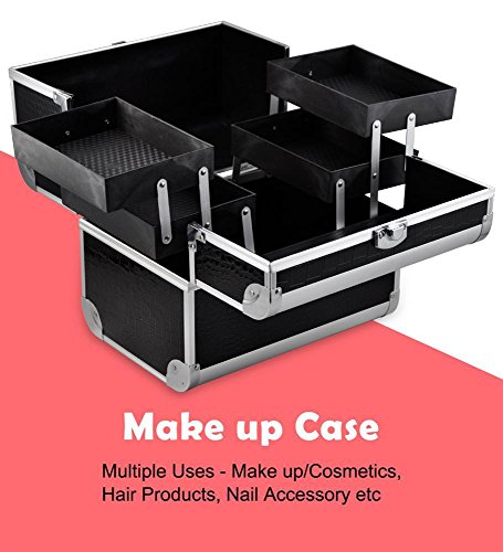 Popamazing Aluminium Beauty Cosmetic Vanity Case Box for Pro Make Up/Nail Art/Travel/Storage (Black) (31.5 x 21.5 x 27cm, Black) is available in Sets & Kits