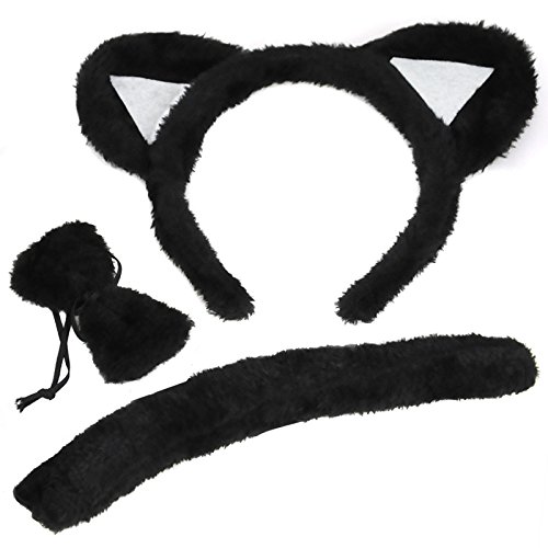 Popamazing Fashionable Cute Black Cat Ears Head Band, Bow Tie Collar & Tail Costume Accessory Fancy Dress Hen Night Party is available in Hair Styling Accessories