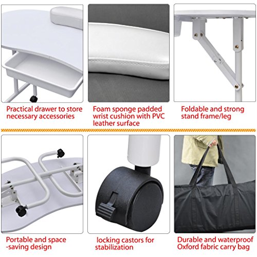 Popamazing Manicure Table Nail Technician Workstation Art Desk with Drawer + Carry Bag + Wrist Rest is available in Chairs & Stools
