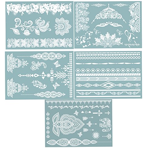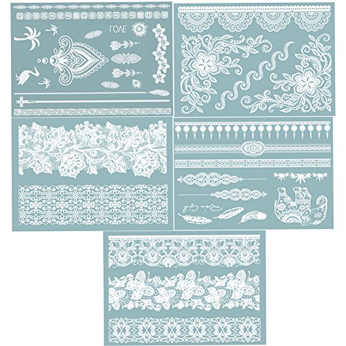 Premium White Lace Tattoos - 150+ Designs Temporary Fake Jewelry Tattoos - Bracelets, Feathers,Elephant,Wrist & Arm Bands Transfer Body Tattoos Sticker for Women is available in Temporary Tattoos