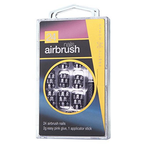 Pretty Woman 24 PCS Airbrush Fake Nails Punk skull Nail File, ABS, Black Silver is available in Nail Art Pens
