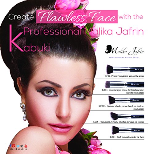 #1 Professional Angled Kabuki KA05 Makeup Brush By Malika Jafrin Makeup Artist - The Finest Premium Handmade Natural/Synthetic Bristle with Wooden Handle - The Brush Has An Angled Shape, Super Soft & Fluffy To Give Precise Application For Bronzer, Cream Blush On The Cheeks. Lifetime Guarantee! is available in Brush Sets