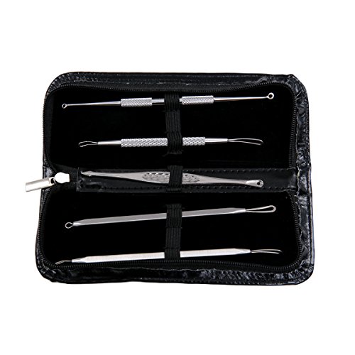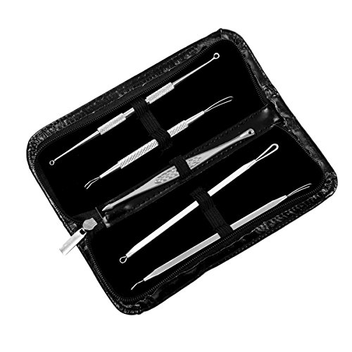 Professional Blackheads Whiteheads Remover, Beauty Facial Tool Set Kit -Flat and Round Wired Ends - Stainless(5 pieces in one package) is available in Sets & Kits