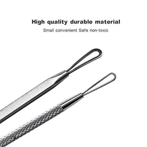 Manufactured with premium grade stainless steel, the set includes 5 Double Looped Tools which easily take on any size blemish; even those located in the most conspicuous part of your body with complete ease. The handles are textured for just the perfect grip during use.