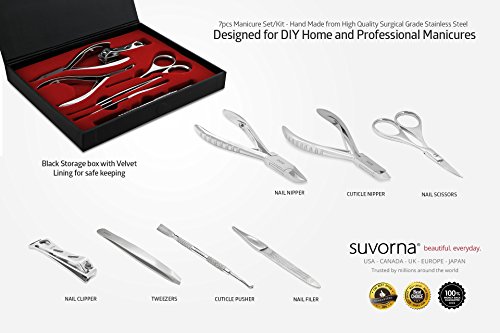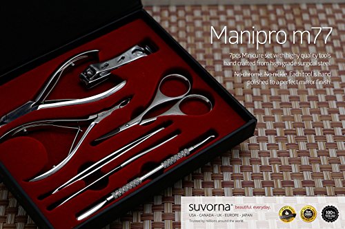 Verified Purchase This review is from: NC-1224 Suvorna Manipro m77, 7 Pieces Professional Manicure / Pedicure Kit, (Toenail Nipper, Nail Scissor, Cuticle Nipper, Nail Pusher, Nail Filer, Nail Clipper & Tweezers) Lifetime Warranty. Gift set