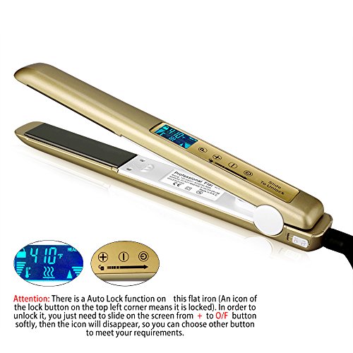 1 Inch Professional Nano-Titanium Flat Iron 450F Salon High Heat with Screen Touch, Dual Voltage, Golden is available in Hair Straighteners