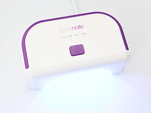 The Bella LED Nail Lamp is small and compact (roughly 6" long) it's plugged into the mains and has a simple 'on' button which toggles between 4 different times (10s, 30s, 60s, 300s). When you have applied your nail polish you simply press the button and select the time, whilst placing your hand inside the nail lamp. The LED lights will light up from underneath (don't look directly at them) and that will dry/ cure your nails.