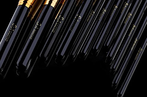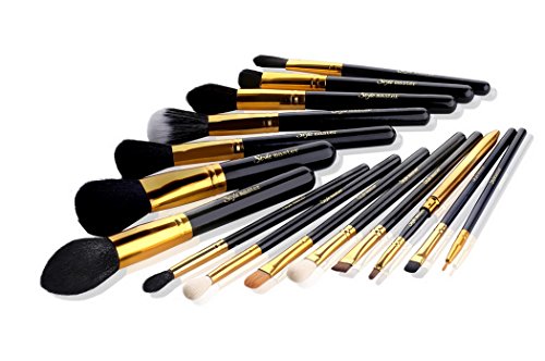 15 Pcs HQ Professional Natural Premium Synthetic Kabuki Makeup Brush Set Cosmetics Foundation Blending Blush Eyeliner Face Powder Brush Makeup Brush Kit With Free Case--Black Golden Handle is available in Brush Sets