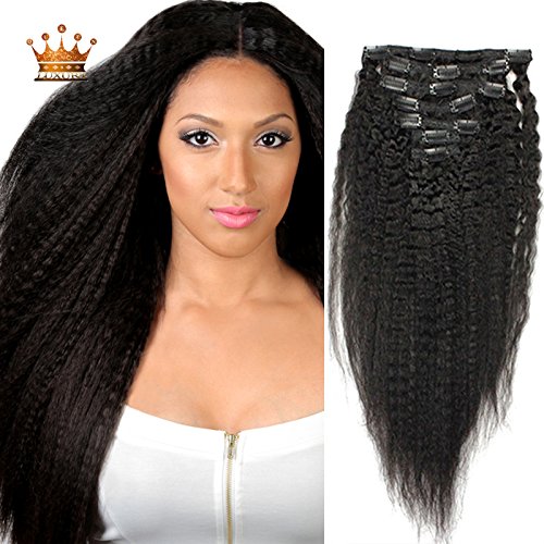 Promotions! 12Inch-28Inch 100% Virgin Human Hair Afro Kinky Straight Clip in Hair Extension for black women, Unprocessed 6A Grade 7 pieces/ set 70G Natural color (14") is available in Hair Extensions