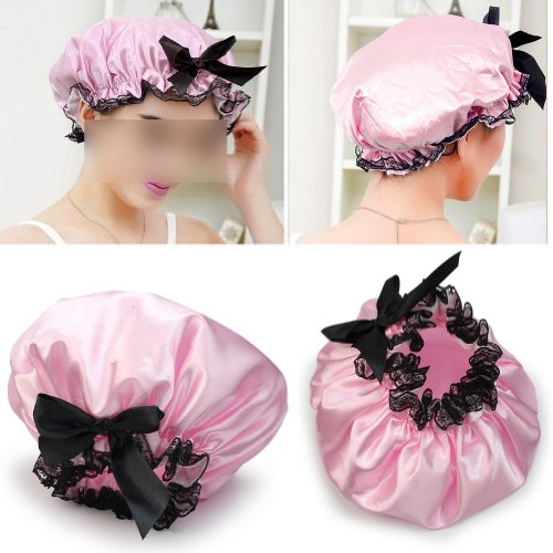 Verified Purchase This review is from: High Quality Women girls Waterproof Bath Shower Cap Hat Ribbon Lace Bowknot Style Sexy and cute (Pink) (Misc.)
