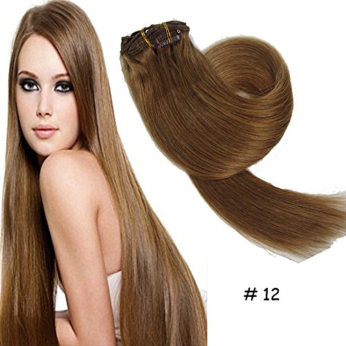 Queen Wig 20" Straight Clip in Remy Human Hair Extensions 7pcs 70g 12# Light Brown is available in Wigs