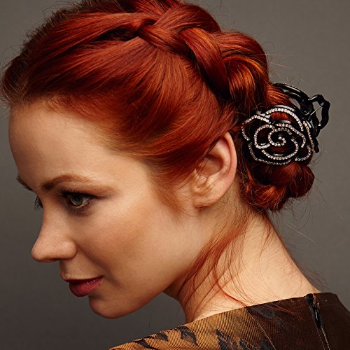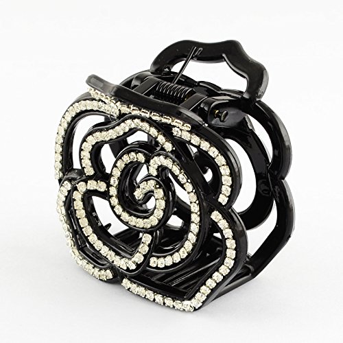 QueenMee Black Flower Hair Clip Black Hair Flower Rhinestone Hair Claw Rhinestone Hair Clip Diamante Hair Clip Diamante Hair Claw Clip Crystal Hair Clip Crystal Hair Claw Black Crystal Hair Clip Medium Hair Claw Clamp Hair Jaw Hair Clamp is available in Claws