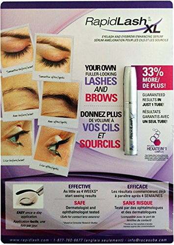 RapidLash® Eyelash and Eyebrow Enhancing Serum is an award-winning formula with a success story of over 3 million units sold worldwide! RapidLash® is ophthalmologist-tested and clinically proven to be safe and effective to cosmetically boost the look of your lashes! The key to unlocking your lashes' potential can be found in the unique RapidLash® formula. Our innovative HEXATEIN® 1 COMPLEX, consisting of six highly effective ingredients, is specifically designed to condition, moisturize and fortify to enhance overall appearance of more beautiful lashes and brows. Polypeptides, comprised of beneficial amino acids, help protect against breakage Biotin (Pro-vitamin B7 / Vitamin H), an essential factor in maintaining healthier-looking, youthful lashes and brows Panthenol (Vitamin B5) helps coat the lashes and brows and seal in moisture and nourishment for improved overall appearance Amino Acids help boost the protein structure, resulting in healthier-looking appearance of lashes and brows Soybean Oil, rich in vitamins, helps impart sheen and luster to lashes and brows making them appear lush and beautiful Pumpkin Seed Extract, high in vitamins and minerals, helps balance and enhance the appearance of lashes and brows.