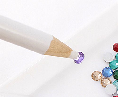 Item description: point drill pen Color: white Specification: round head, round core, 17.5 cm long Features: This Pencil is made of wood and enviornmental colorful HB core, which is also can be used as the marking pencil on the paper?wood?plastic?cloth and so on. Using: The core of the pencil can stick the colorful diamonds, which will make it easily to stick the diamonds. So it can be used for nail care?Cell phone beauty? Clothes hot drilling? jewelry accessories so on. How to use: With a knife or drill pen knife to cut the pen, it can be used untill the bottom of the core is showed. Remark: The tip of the pencil can't be too sharp. And this pencil is apply to diamonds with size below 4mm. We suggest you to use the tweezers for the diamonds above 4mm.