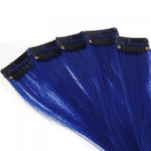 SODIAL(R) 5 Pcs Colored Clip-on In Hair Extensions Straight Wigs Hairpieces 25 Inch Long - Dark Blue is available in Hair Extensions