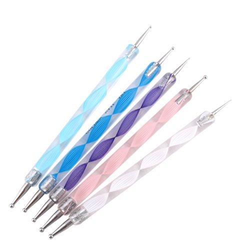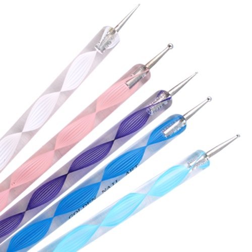 SODIAL(R) Set of 5 Multi Coloured Swirl Double Ended Nail Art Dotting/Marbleizing tools Color Choose is available in Dotting Tools