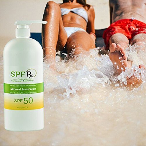 SPF 50 Natural Sunscreen with Zinc Oxide & Titanium Dioxide is a chemical-free sunscreen that provides 80 minutes water resistant for broad spectrum protection. This long-lasting mineral based sunscreen features an SPF 50 broad spectrum protection from damaging UVA and UVB rays. SPF 50 Natural Sunscreen is enriched with clinically proven actives and powerful anti-oxidants that deliver anti-aging benefits. All SPFRX formula variations are: water and perspiration resistant for up to 80 minutes, designed for optimal skin tolerance and are safe and ideal for the entire family and all skin types. Zinc Oxide and Titanium Dioxide sunscreen are the most effective sunscreen ingredients that protect against UVA rays and do not penetrate into your skin.
