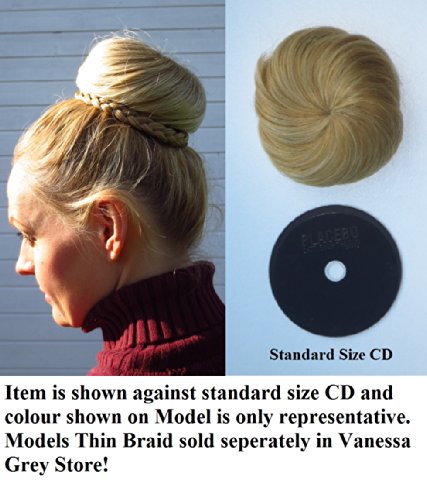 Work the airline stewardess look. Following on from the original Ballerina Bun we now introduce the Super Bun Which is 30% bigger and allows you to create your own unique style. Go Large and style the big 60's hairstyle look that's still so current now. Try it low or mix it with the Thin Braid which you will also find in our store., This type of faux bun is low maintenance and can be styled differently depending on the desired result. The bun can be styled to obtain an elegant and classic up do, appropriate for formal events or it can be styled to obtain a more casual side or back bun, hairstyle. Even on quite short hair the faux side bun will work, as long as you have enough hair to pull into a little pony. It looks gorgeous on sleek straight hair with side swept or straight across bangs, but it can be styled on curly hair too. For the side bun look the hair needs to be combed and gathered slightly on one side of the head around the nape of the neck. Secure with a hair band. Use the combs in the faux bun, to secure it to your hair, then pull the drawstring tight. Wrap the extra drawstring round and round the base of the bun and secure with a bobby pin or hair grip. The bun will stay secure as it is now fixed on firm. You can use the same method to fix on a top bun. The Super Big Bun is approx. 15cm wide and 6 cm of height.